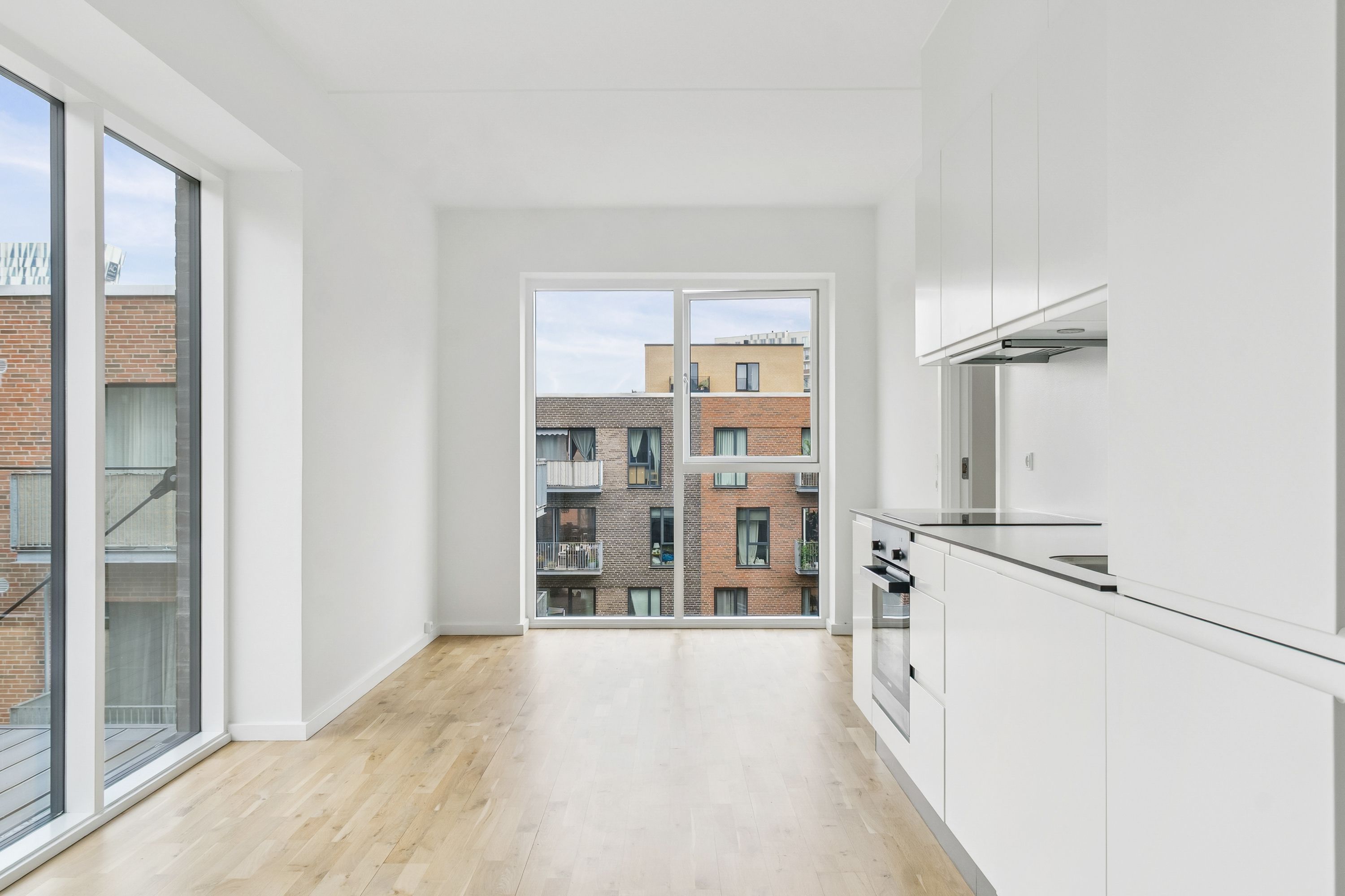 I Elmehuset boliger, får du fornøjelsen af at kokkerere i et moderne køkken fra Svane, modellen vision med elegante, hvide overflader, godt med skabsplads og et nydeligt armatur fra Grohe. Siemens har ydermere sørget for den højeste kvalitet, når det gælder hårde hvidevarer i lejemålet. Lejemålet er nemlig udstyret med Siemens køle/fryseskab, integreret opvaskemaskine, indbygningsovn i rustfrit stål/glas og induktionskogeplade med fire zoner og Touch Control. Emhætten er indbygget i overskabet og er af mærket Silverline. Badeværelset er udført i hvide elementer, som giver et flot og eksklusivt udtryk. Brusenichen er udført i lysegrå Monte Carlo-klinker på både gulv og væg, som bidrager et luksuriøst udtryk til badeværelset. Ydermere er badeværelset udstyret med Vaskemaskine og tørretumbler. Elmehuset er beliggende centralt i Ballerup og nær indkøb, offentlig transport, daginstitutioner, skoler og fritidsliv. Inden for 5 minutters gå gang, kan du finde, Ballerup st. supermarkeder, Ballerupcenteret og meget mere. Elmehuset består af 112 nybyggede lejligheder i spændet 59-99 m2 fordelt på 2-4 værelser Elmehuset opfylder drømmen om en stilren og moderne bolig, med tilhørende altan eller terrasse, hvor der er mulighed for at nyde den friske luft og de solrige dage. I gården vil du kunne finde det smukke og rummelige orangeri, som er tilgængeligt for alle beboere i ejendommen. Ydermere er der en moderne legeplads, Er du træt af at lede efter en parkeringsplads ? I Elmehuset er der mulighed for at leje en parkeringsplads i kælderen til blot 416,16 kr. pr. mdr. Hertil kommer deposita for fjernbetjening til kælderen pålydende 1.248,48 kr. (I parkeringskælderen er der 2 ”flyvepladser” til el-biler)  Til lejemålet medfølger et depotrum. Det er muligt at søge om dispensation til husdyr.