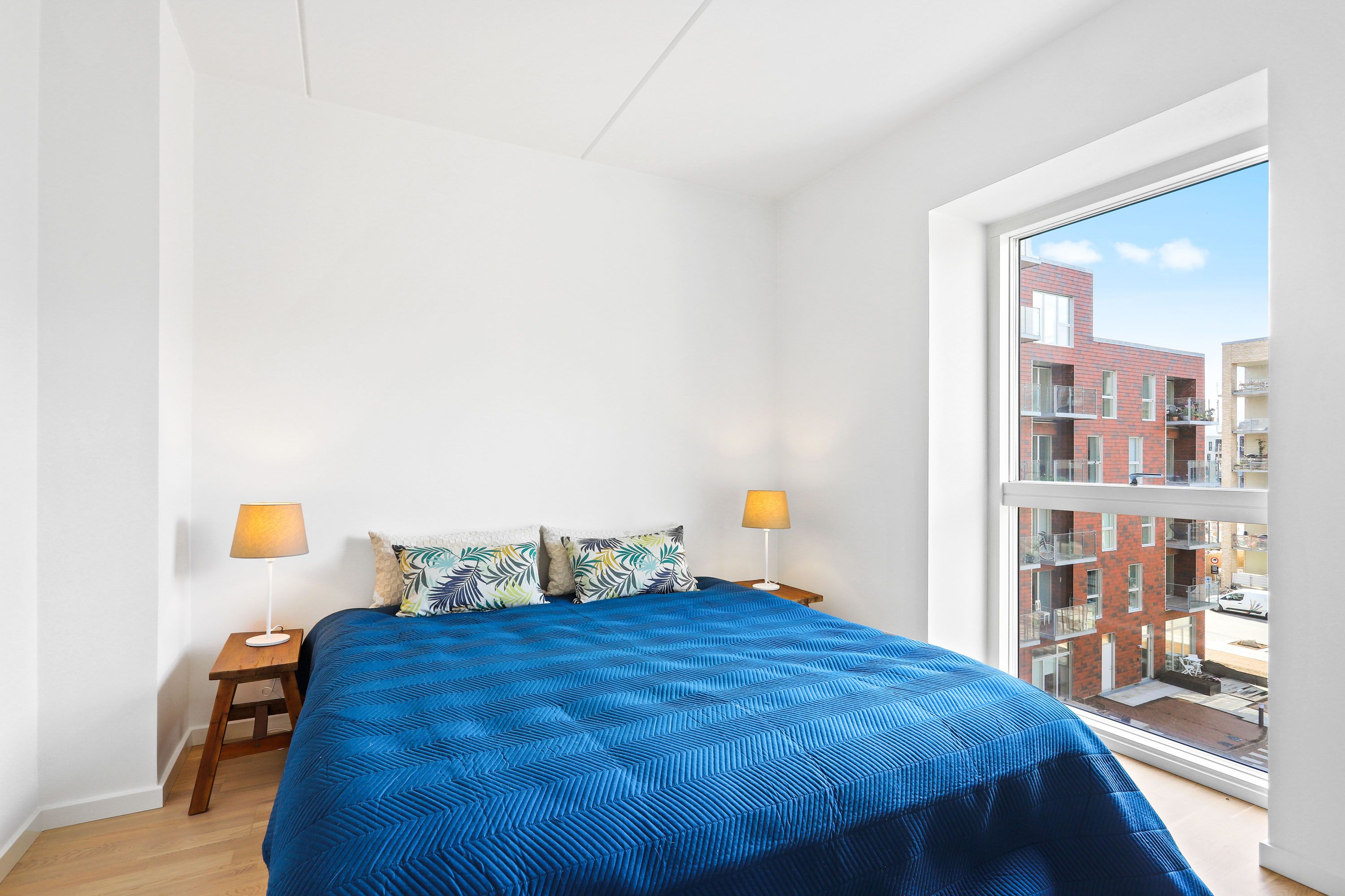 På Murervangen har du mulighed for at vælge en planløsning, som passer til dine behov. Afhængig af lejlighedens størrelse får du et køkken-alrum, med plads til at indrette sig med stue og spiseområde. På badeværelset får du kombineret vaskemaskine og tørretumbler samt separat bruseniche. Lejlighederne har, afhængigt af størrelsen, ét eller flere værelser. Der er depotrum i alle lejemål. Alle boliger har enten altan eller terrasse, og nogle lejligheder har to altaner eller to terrasser, der giver dig rig mulighed for at nyde udelivet. Hårde hvidevarer Alle boliger har alt i hårde hvidevarer inklusive opvaskemaskine, vaskemaskine og tørretumbler. Der er gulvvarme i hele boligen. Husdyr Lejere kan ansøge om tilladelse til at holde indekat og hund på adressen. Udekatte er ikke tilladt. Se vores samlede husdyrsregler her. Parkering Parkeringskælderen ligger under ejendommen, hvor du kan leje en p-plads. Der er handicapparkeringspladser og ladestandere i p-kælderen. Elevator Der er elevator i alle opgange, som fører dig direkte op til din hoveddør. Der er desuden en elevator i trapperummet i gården, som fører dig ned i p-kælderen. Fælles arealer I gårdrummet finder du gode, fælles opholdsområder, der indbyder til hyggelige stunder med familie, venner eller naboer. For de yngste beboere er der også legeområder i gården. De viste billeder kan være fra et andet men tilsvarende lejemål i samme ejendom. Mindre afvigelser kan derfor forekomme.