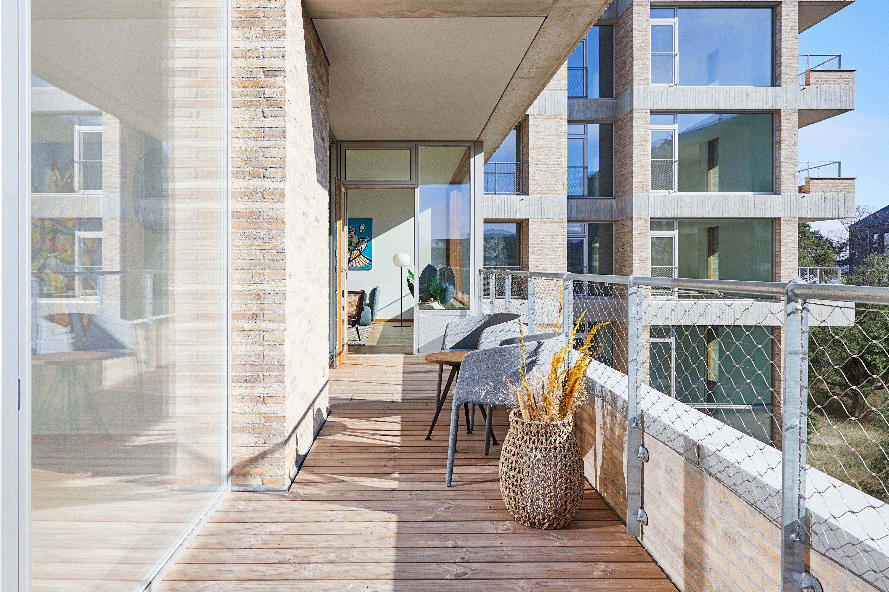 Drømmer du om at bo i en lys lejlighed med udsigt til vand og himmel til alle sider beliggende på en bilfri ø med byen lige for dine fødder? Så er denne unikke, nybyggede 3-værelses lejlighed på Kronløbsøen i Nordhavn den perfekte bolig for dig. Lejligheden, som er bygget i 2023, byder på en enestående kombination af luksus og beliggenhed. Med sine to solrige altaner – én mod øst og én mod vest – får du uhindret udsigt til havnebassinet og de smukke hvide klinter mod vest, samt udsigt til det smukke haveanlæg og kig til Øresund mod øst. Her kan du nyde solen stort set hele dagen og føle dig hævet over byen med privatliv uden indkig fra naboer. Den rummelige og veludnyttede lejlighed med store vinduespartier indeholder et lyst og åbent køkkenalrum med eksklusivt køkken fra “Kustomhouse” i mat grå samt spiseplads med udgang til den solrige altan mod vest og stueafdeling. Mod øst ligger to dejlige soveværelser, et med skabe og udgang til altan. Derudover er der et flot og moderne badeværelse med bruseniche og vaskesøjle samt en rummelig og møblerbar entré med skab. Hele lejligheden emmer af luksuriøse detaljer og gennemgående høj kvalitet og stilfuld finish. Overalt i lejligheden er der gulvvarme og gulvene er belagt med smuk sildebensparket i eg. På begge altaner er der store plantekasser med automatisk vandingsanlæg, som sørger for, at du altid har noget frodigt og grønt at se på uden at røre en finger. På Kronløbsøen lever du et ø-liv på en lille grøn ø uden biler. I gården er det smukkeste grønne anlæg, og der er parkeringspladser i parkeringskælderen under øen, og fra klinterne kan du bade eller sætte dit SUP i havnebassinet. Derudover har du adgang til fælleslokale, hvis du skal holde mindre eller større fester, samt eget kælderlokale. Endelig får du adgang til et eksklusivt, nyopført fælles fitnesscenter, som udelukkende er forbeholdt beboere på Kronløbsøen. Adgangen er inkluderet i prisen. På Nordhavn ligger Kronløbsøen helt centralt – men tilbagetrukket, så du bor stille og privat – men tæt og med let adgang til bydelens puls og liv, herunder shopping, restauranter, caféer, biograf, havnebad, konditaget Lüders, hvor du kan dyrke crossgym, Kajakklubben Nordhavn og offentlig transport (to metrostationer og en S-togsstation), i gåafstand. Exclusive Rental Apartment with Two Balconies and Water Views on a Car-Free Island Do you dream of living in a bright apartment with views of water and sky on all sides, situated on a car-free island with the city right at your feet? Then this unique, newly built 3-room apartment on Kronløbsøen in Nordhavn is the perfect home for you. Built in 2023, this apartment offers an exceptional combination of luxury and location. With its two sunny balconies – one facing east and one facing west – you get unobstructed views of the harbor basin and the beautiful white cliffs to the west, as well as views of the lovely garden and glimpses of the Øresund to the east. Here, you can enjoy the sun almost all day and feel elevated above the city with privacy, free from neighbors’ eyes. The spacious and well-utilized apartment with large windows features a bright and open kitchen-dining area with an exclusive kitchen from “Kustomhouse” in matte gray, a dining area with access to the sunny west-facing balcony, and a living room. To the east are two lovely bedrooms, one with closets and access to the balcony. Additionally, there is a beautiful and modern bathroom with a shower niche and laundry, as well as a spacious and furnishable entrance hall with closets. The entire apartment exudes luxurious details, high quality, and stylish finishes. There is underfloor heating throughout, and the floors are covered with beautiful herringbone parquet in oak. Both balconies are equipped with large planters with an automatic watering system, ensuring you always have something lush and green to look at without lifting a finger. On Kronløbsøen, you live an island life on a small green car-free island. The courtyard features the most beautiful green landscape, and there are parking spaces in the underground parking garage beneath the island. You can swim or launch your SUP from the cliffs into the harbor basin. Additionally, you have access to a common room for hosting small or large parties, as well as your own basement storage room. Finally, you have access to an exclusive, newly built shared fitness center reserved solely for residents of Kronløbsøen. Access is included in the price. Kronløbsøen in Nordhavn is centrally located – yet secluded, so you live quietly and privately – but close and with easy access to the pulse and life of the neighborhood, including shopping, restaurants, cafés, a cinema, harbor baths, the Lüders workout rooftop for cross-gym, the Nordhavn Kayak Club, and public transport (two metro stations and an S-train station) within walking distance.