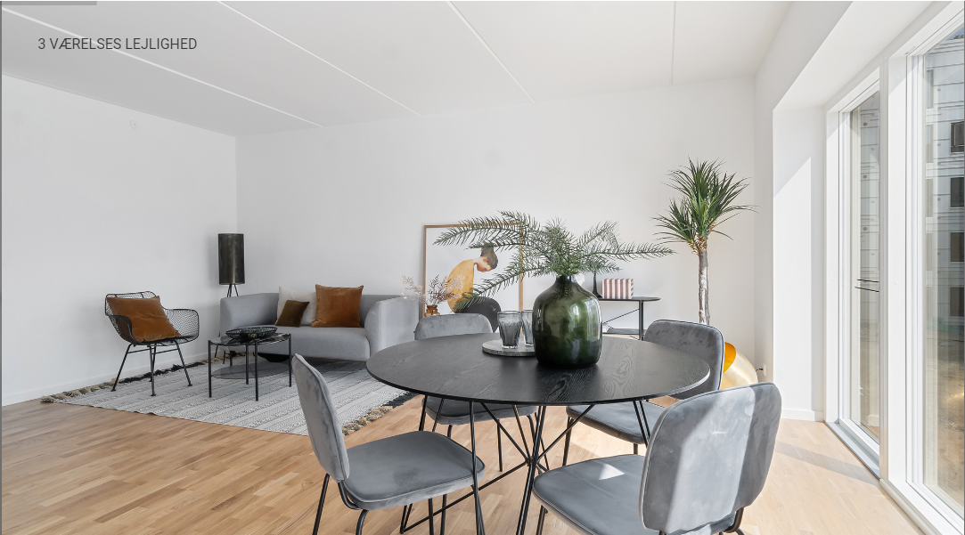 Få første måneds husleje gratis ved at leje og derved betal mindre i indskud, hvis du lejer inden d. 15/3! 3. etape af de nyopførte lejligheder i Virkelund i Coop Byen udbydes nu og omfatter én af i alt tre boligblokke med lejeboliger i Samværet, kaldet Langbordet. I Langbordet er der boliger til alle. Her kan enlige, par, familier og modne voksne finde deres hjem med perfekte private rammer kombineret med omgivelser, der indbyder til fællesskab. I første etape i Samværet udbydes 47 boliger, der spænder mellem 2-værelses fra 70 kvadratmeter til 5-værelses lejligheder på 130 kvadratmeter og rækkehuse på 128-136 kvadratmeter. Der er derfor rig mulighed for at finde lige netop dén bolig, der passer dig. I Langbordet er æstetik og funktionalitet nøgleord. Boligerne er indrettet til en moderne livsstil med lyse rum, gode planløsninger og lækre detaljer. Blandt andet er boligerne indrettet med køkkener fra Svane med alle hårde hvidevarer. Ejendomme er spækket med fællesfaciliteter og der findes ét fælleslokale for beboerne i hver af boligblokkene i Samværet. Multirum og køkken/alrum fungerer som fleksible rammer for både hverdag og fællesskab. Multirummet kan anvendes til leg, bevægelse, film, ophold, kreative aktiviteter, spil og større møder, mens køkken/alrummet danner rammen om fødselsdage, fællesmiddage, caféfunktion, hjemmearbejde og møder. Indretningen suppleres af inventar fra FBD og Stykka, som understøtter rummenes alsidighed og funktionalitet. I Virkelund finder du virkelig boliger, som henvender sig til alle faser i livet – fra større familieorienterede boliger, til small living boliger for enlige og par samt boliger for modne voksne, der ønsker moderne rammer med nem ankomst og minimalt vedligehold. Samtlige boliger opføres under hensyn til miljøvenlige materialer og et sundt indeklima. Derudover har alle boliger egen altan eller terrasse, hvorfra den friske luft kan nydes omgivet af bykvarterets levende stemning. Der er ligeledes mulighed for leje af parkeringsplads. BEMÆRK billederne er fra en prøvebolig.