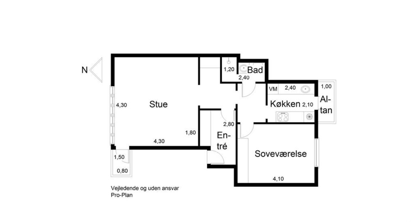 2 rm. apartment of 67 m²