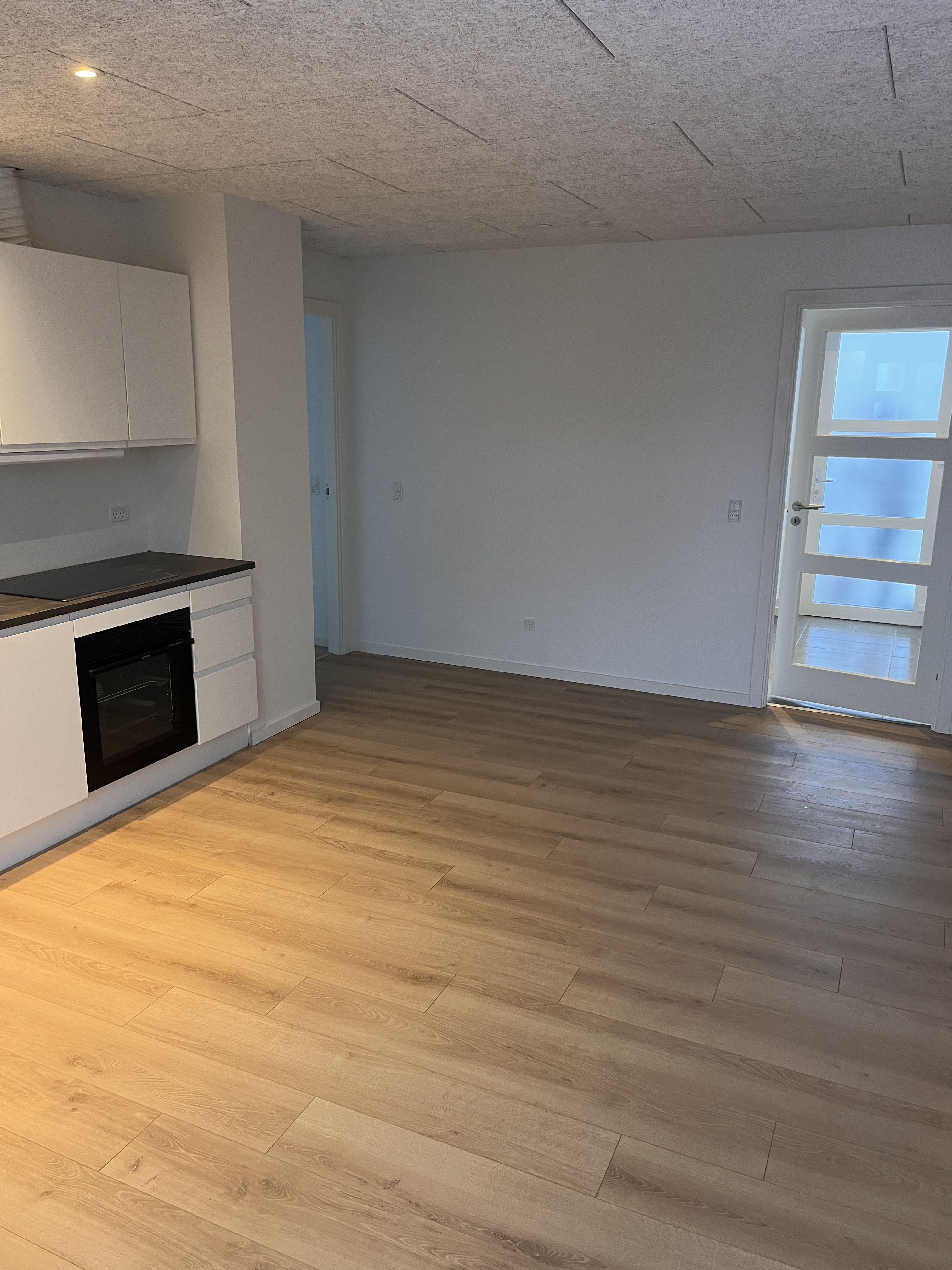 Lejligheden indeholder en lille gang, badeværelse, køkken i åben forbindelse med stuen og soveværelse med faste skabe. Der er vaskemaskine og tørretumbler i kælderen.