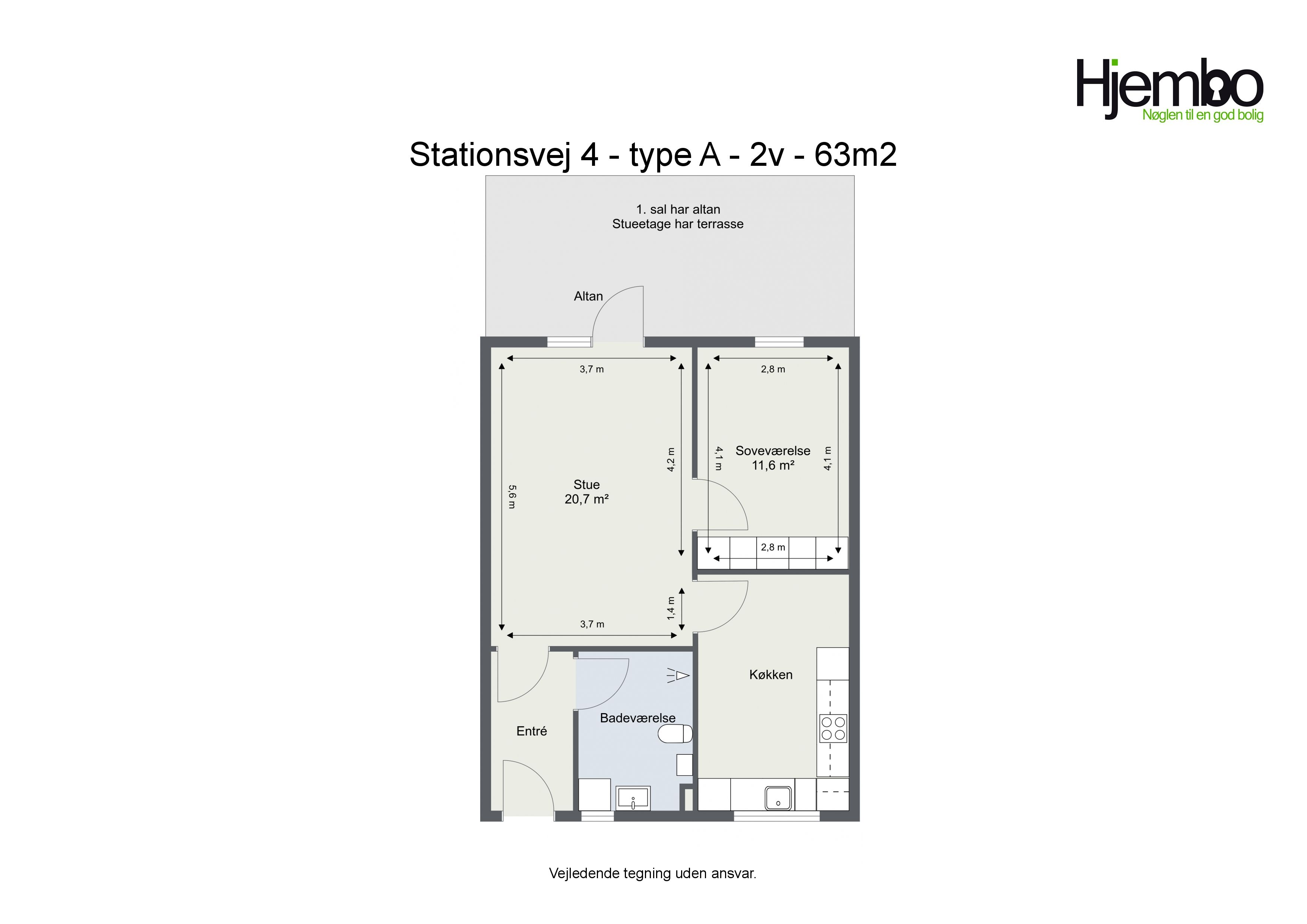 2 rm. apartment of 63 m²