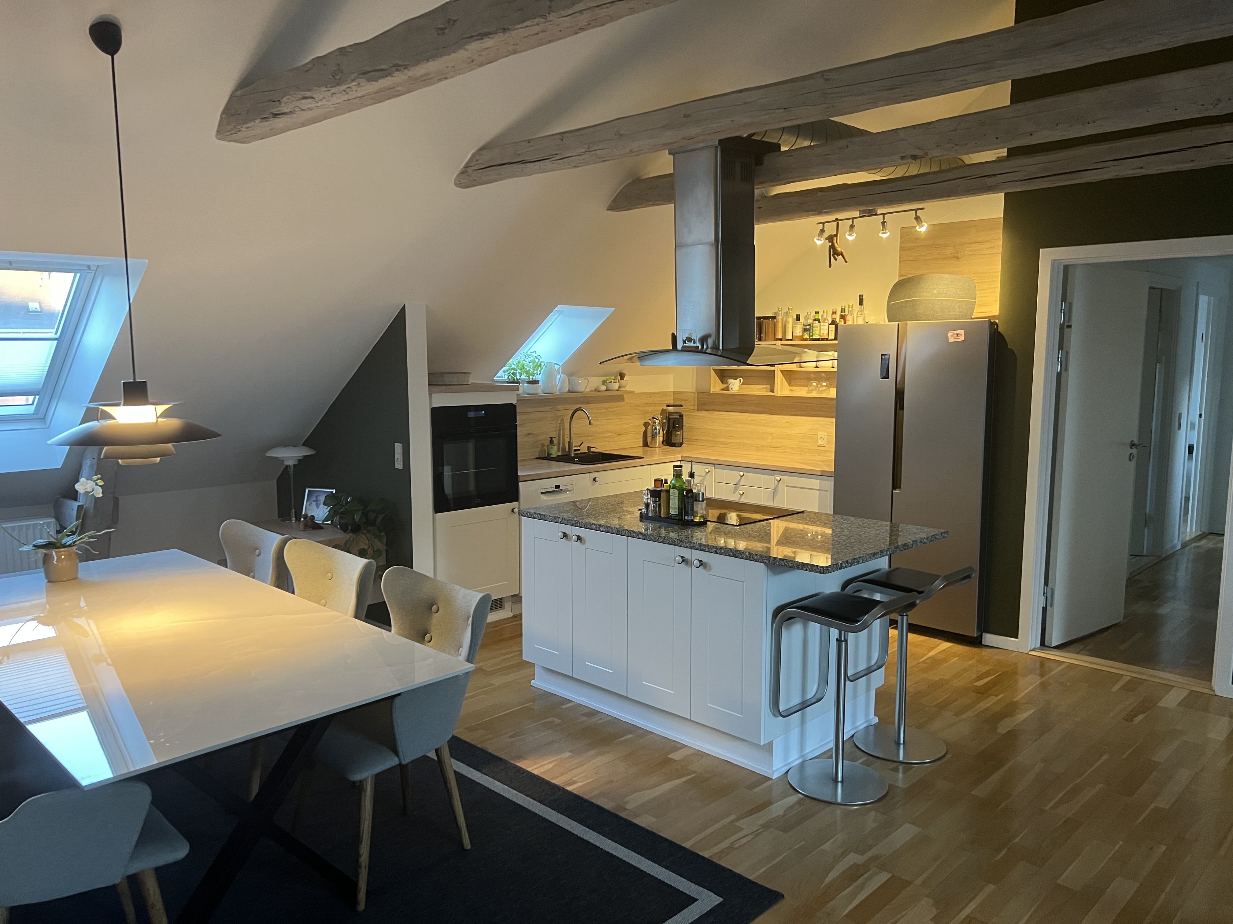 4-værelses lejlighed til leje – ideel for rolig lejer Eksklusiv 4-værelses lejlighed – perfekt til den kræsne og rolige lejer Denne smukke lejlighed præsenterer sig lys, elegant og gennemført i alle detaljer. Lejemålet er opgraderet med kvalitetsmaterialer, herunder nye vinduer og døre, og byder på en imponerende stue i åben forbindelse med et stilrent køkken. Hertil kommer tre velproportionerede værelser samt et eksklusivt badeværelse med moderne bruseniche, vaskemaskine og tørretumbler. Adgang til en privat terrasse, der skaber en unik mulighed for udeliv i rolige omgivelser. Lejligheden er ideel for den stille og kvalitetsbevidste lejer, der ønsker et raffineret og komfortabelt hjem tæt på byens liv.