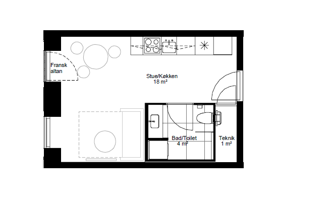 1 rm. apartment of 36 m²