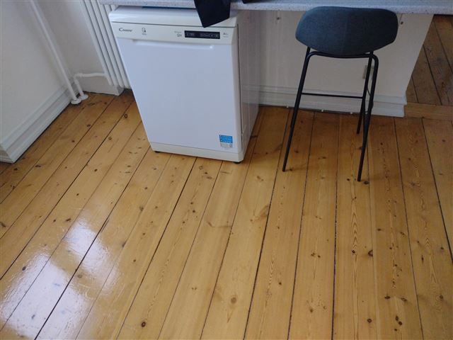 Nymalet overalt og med nyslebne gulve.