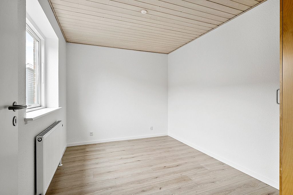 På første sal er der balkon, endnu et badeværelse med toilet og brus, et soveværelse samt to værelser med indbyggede skabe. Hele lejemålet har gulvvarme, som giver ekstra komfort året rundt.