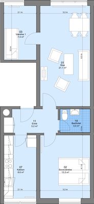 3 rm. apartment of 86 m²