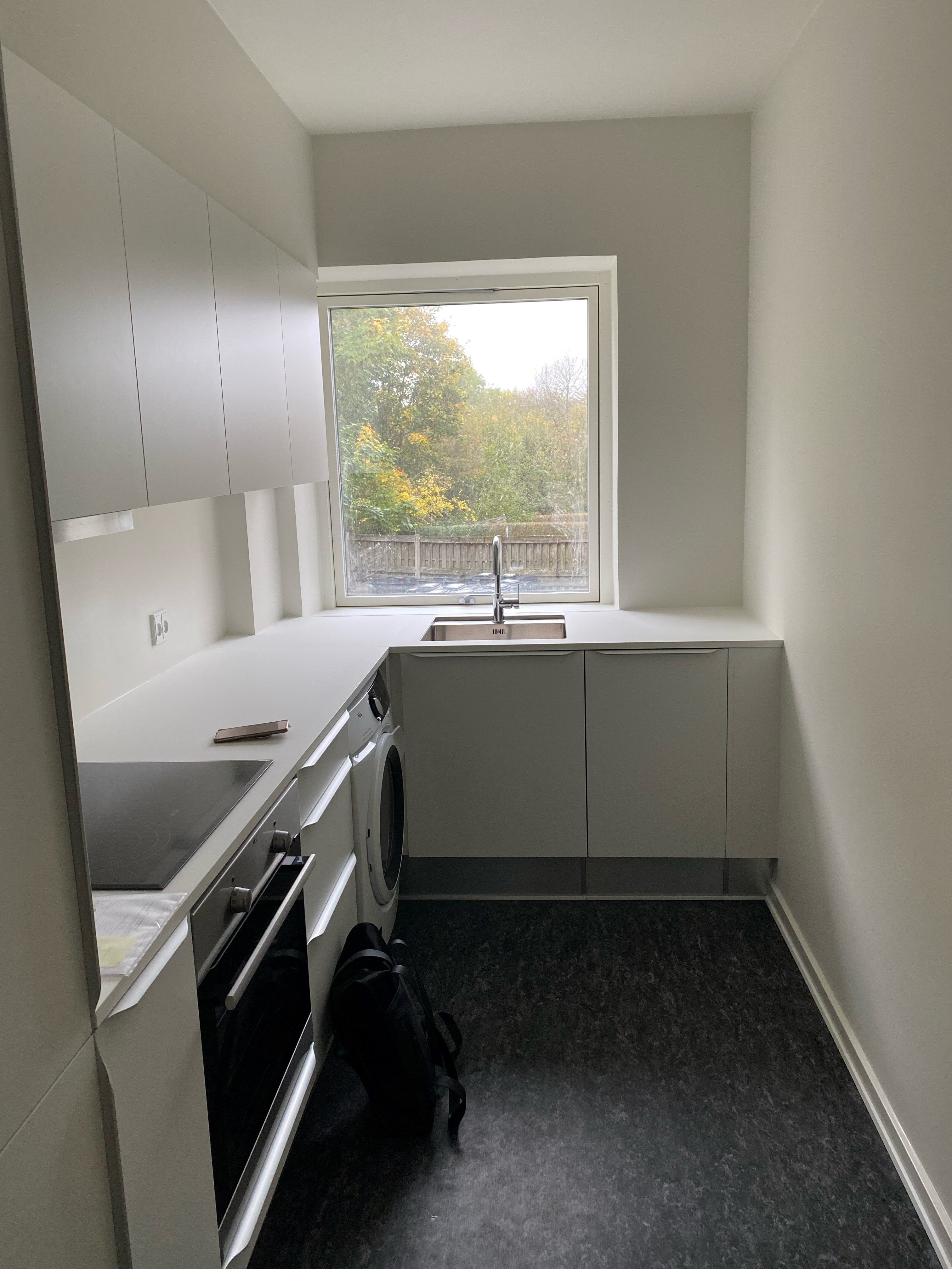 Der er køle-/fryseskab, indbygningsovn, 2-zoners induktionskogeplader og emhætte i lejlighederne. Vaskemaskine og tørretumbler findes i kælderen.