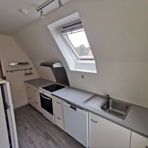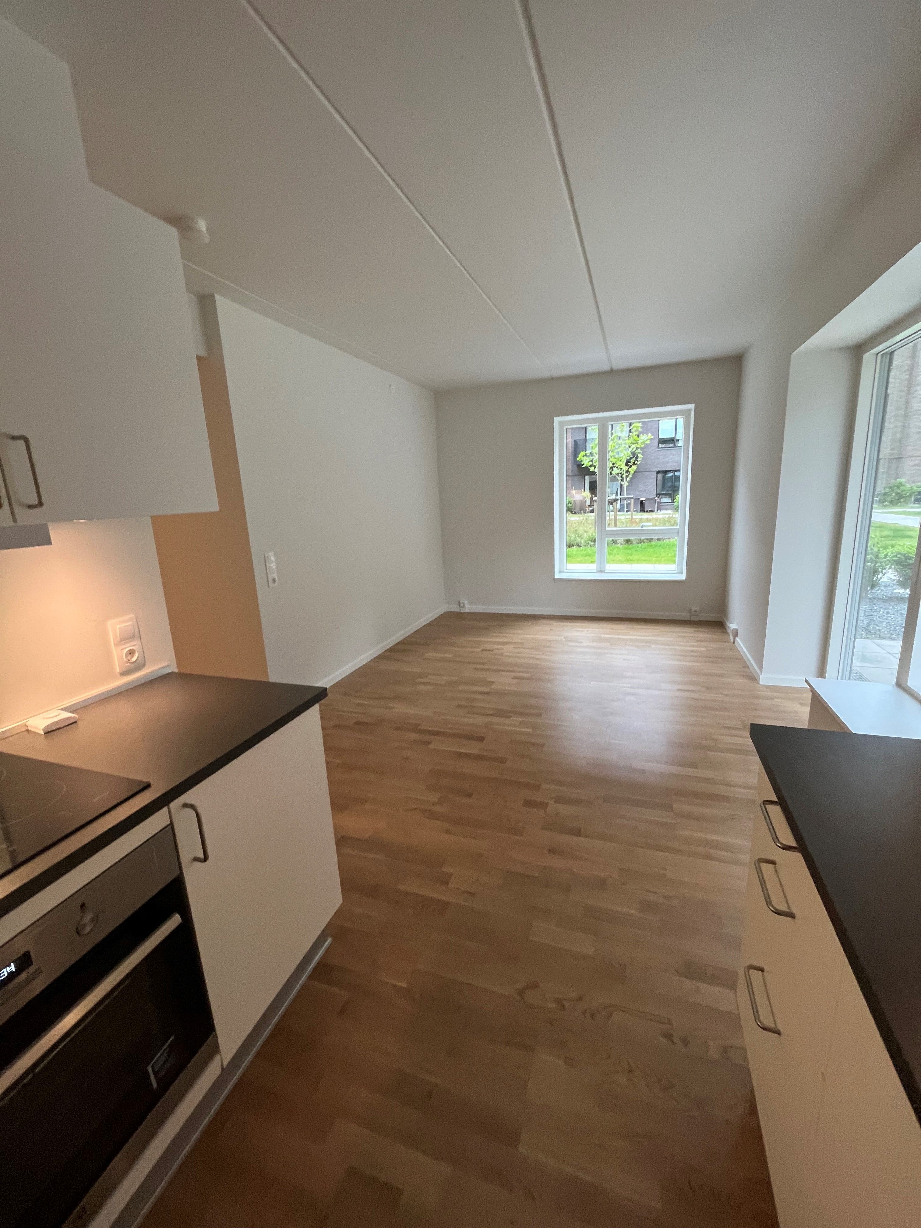 Lejligheden indeholder nyt lyst køkken med plads til egen opvaskemaskine, med en stor åben stue, godt badeværelse med brus og et dejligt soveværelse med skab.