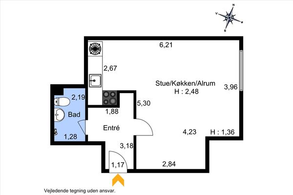 1 rm. apartment of 26 m²
