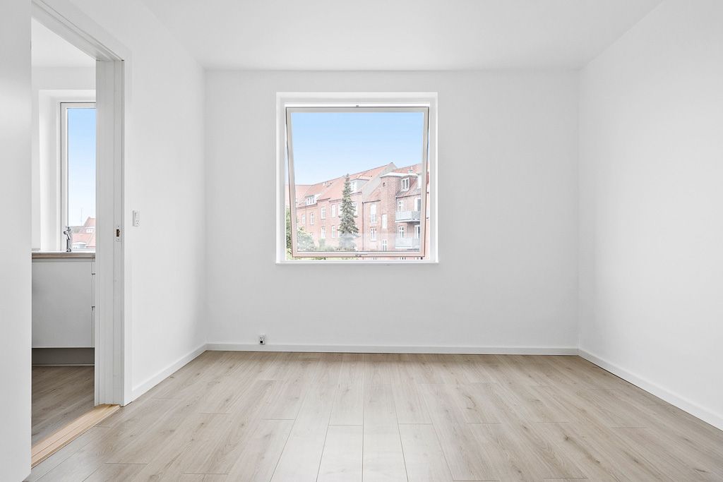 Når du træder ind i lejligheden, bliver du mødt af et fantastisk lysindfald fra de store vinduespartier, hvor du kan glæde dig over opholdsrum med masser af dagslys. Til lejligheden er der en dejlig privat terrasse.