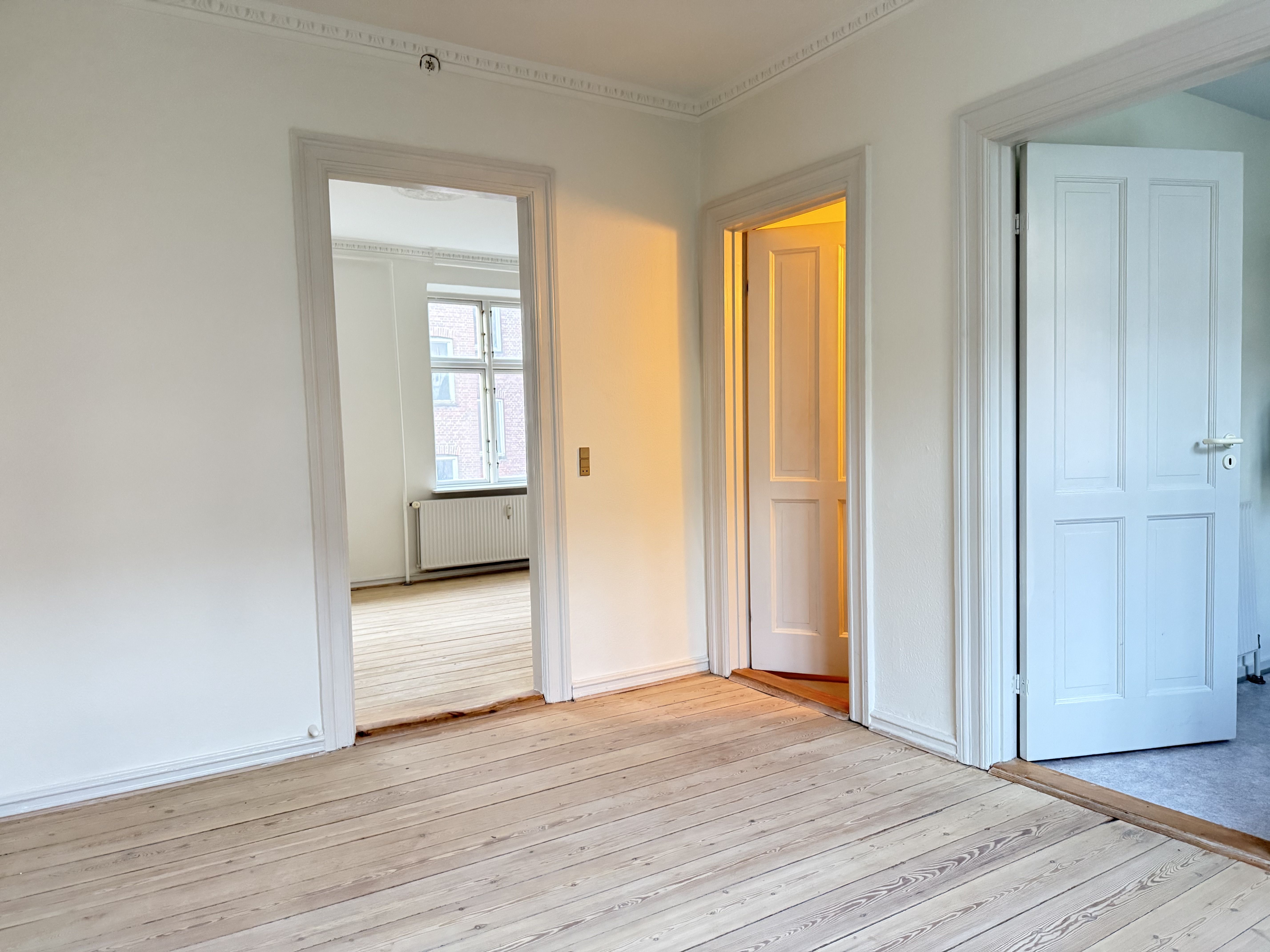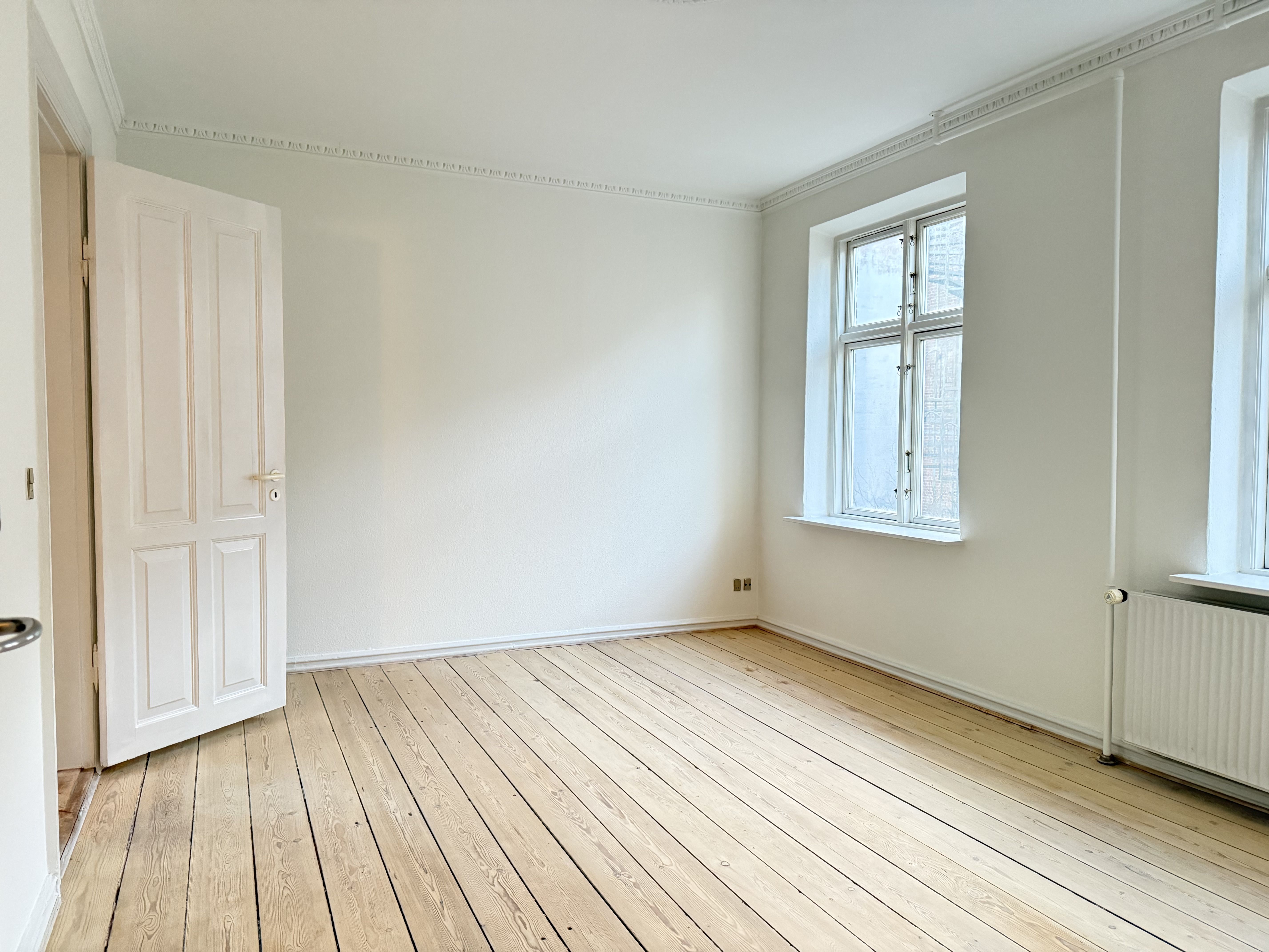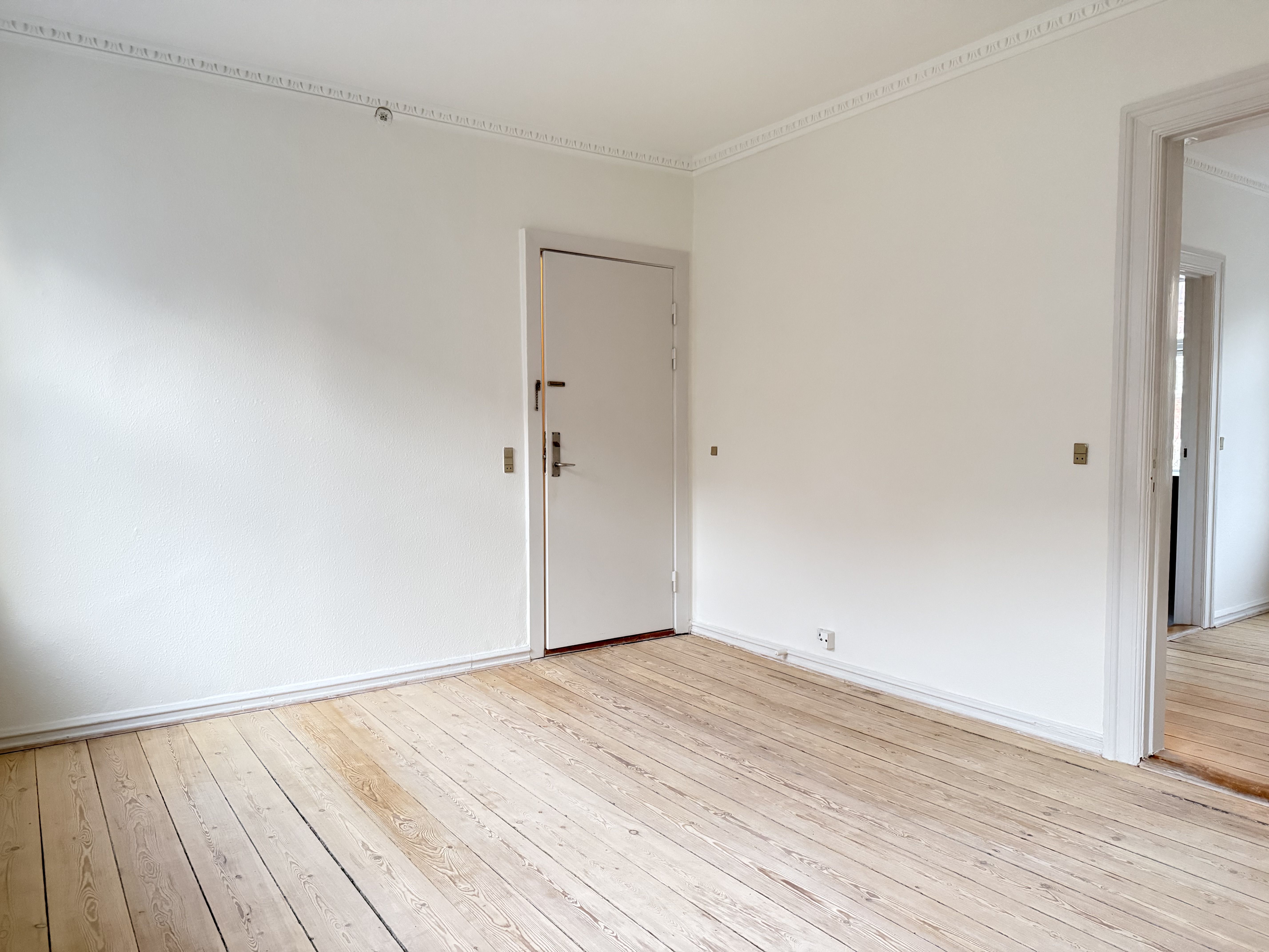 Lejligheden er godt indrettet med fordeler gang til køkken, stue, soveværelse og badeværelse. Helt nyt køkken med komfur, emhætte, kølefrys og opvaskemaskine. Mindre badeværelse med brus. Der er trægulve og lyse lofter i hele lejligheden. Der er to indgange til lejligheden. Fordør med indgang til fordeler gang og bagdør med indgang til køkken. Hele ejendommen er med nyere vinduer.