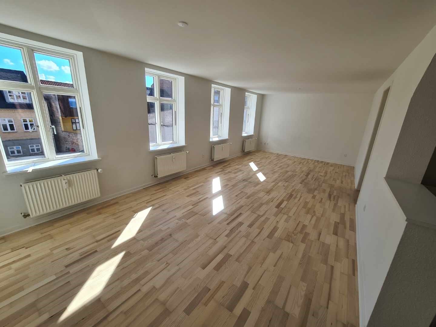 Beliggenheden af denne lejlighed er virkelig god, da den giver dig det bedste af begge verdener. Du er tæt på byens pulserende liv med et væld af indkøbsmuligheder, hyggelige caféer og restauranter, men samtidig har du nem adgang til naturens ro og fred. Uanset om du ønsker at nyde byens liv eller tage en afslappende tur i det grønne, er begge dele lige ved hånden. Derudover er motorvejen E45 kun få minutter væk, hvilket gør boligen perfekt for pendleren, der ønsker en bekvem og effektiv transport til og fra arbejde.