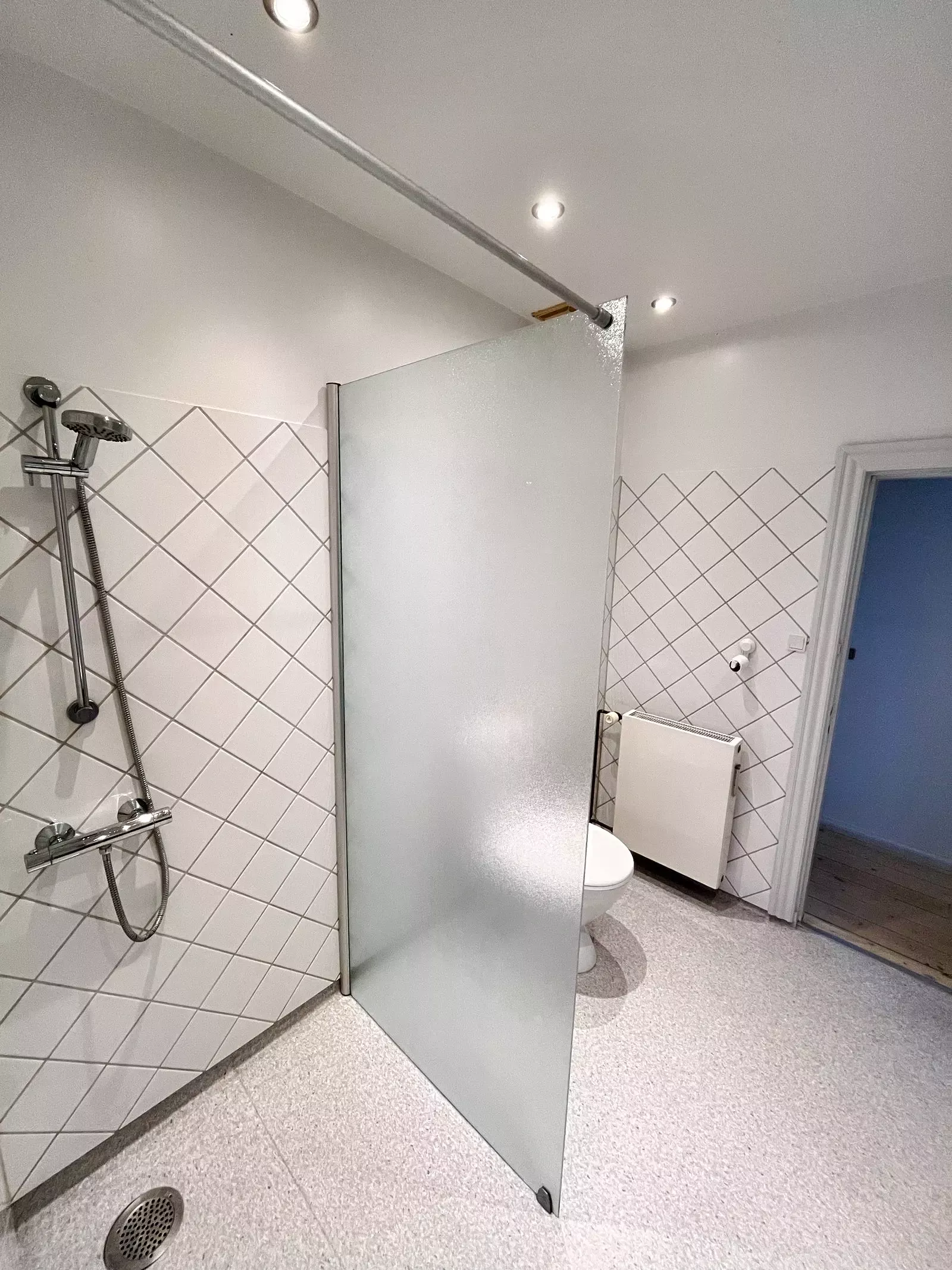 Lejligheden består af en rummelig stue, et lyst soveværelse/spisestue samt et ekstra værelse, der egner sig perfekt som kontor, børneværelse eller ekstra soveværelse. Køkkenet er pænt, praktisk og med godt med skabsplads. Badeværelset er mindre, men velindrettet – og her finder du også en vaskemaskine til tøj, hvilket er en stor fordel i dagligdagen.