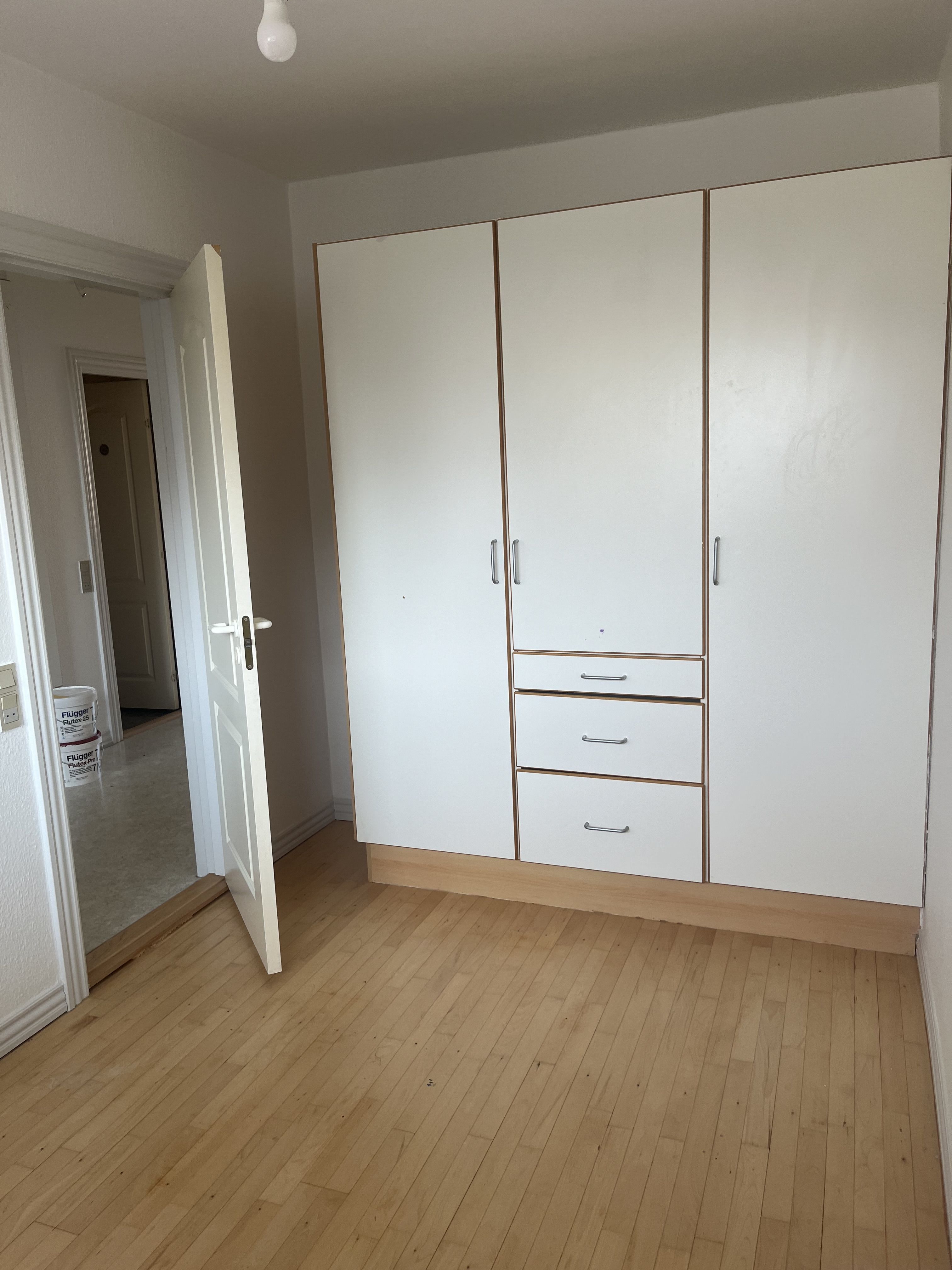 Opholdszonen består af to store stuer med smukke plankegulve, hvide vægge og brede vinduespartier, der trækker masser af dagslys ind. Her er fin plads til både sofa- og spiseplads samt et soveværelse, køkken og bad.