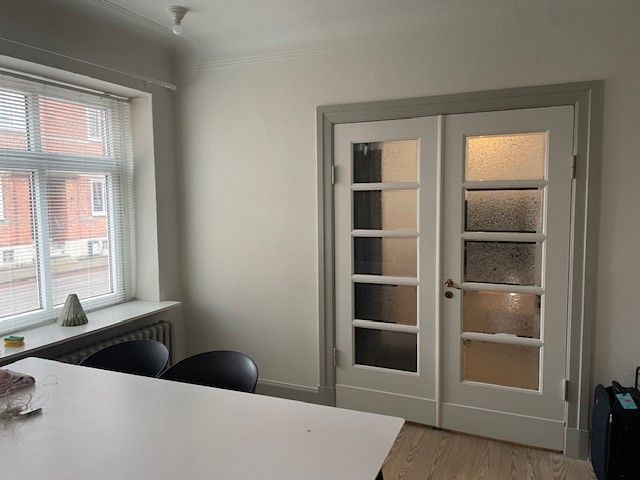 Dejlig lejlighed med central beliggenhed er ledig fra 1.1.2026 Stor flot 3 værelses lejlighed på 3. sal midt i byen. En lejlighed med mange skønne detaljer beliggende i centrum på Jernbanegade. Stor stue, stort soveværelse og 1 mindre værelse – alle regulære rum. Køkken med opvaskemaskine, køl/frys og mikrobølgeovn samt god plads til spisekrog. Dejligt badeværelse med vaskemaskine og tørretumbler. Lejligheden indflyttes som ikke istandsat. Alt forbrug, el, vand og fjernvarme afregnes direkte med udbyder og indgår ikke i huslejen. Månedlig husleje kr. 8300,- Indskud er depositum 3 mdr. husleje + 1 mdr. husleje forud i alt: kr. 33.200 Samlet indflytningspris: kr. 41.500,- OBS! Lejligheden er ikke en dele bolig, og udlejes ikke til studerende.
