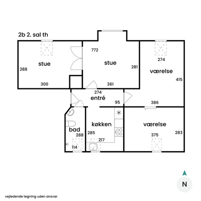 4 rm. apartment of 90 m²
