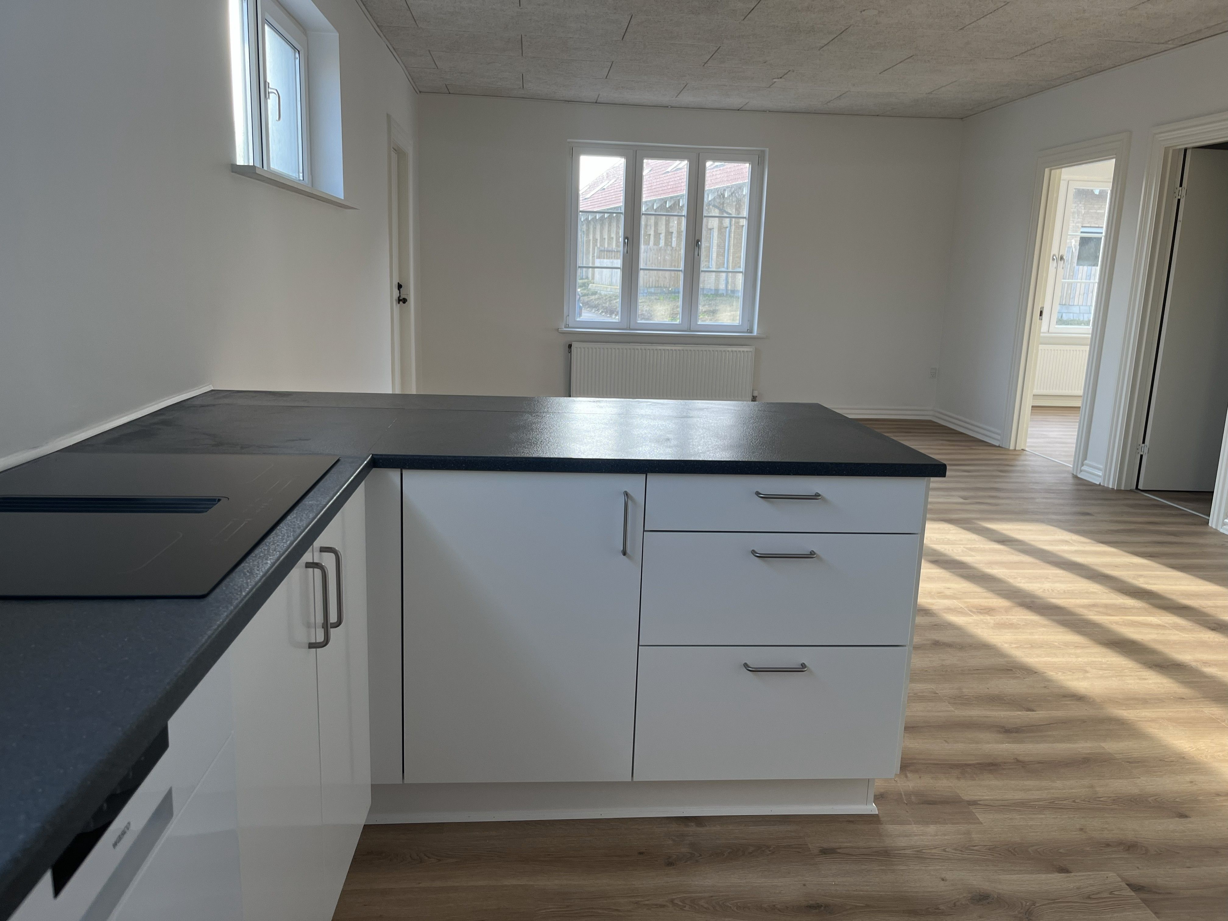 Velindrettet 3-værelses lejlighed på 83 m² beliggende i stueetagen. Lejligheden har et stort og lyst køkken-alrum med god plads til både spisebord og opholdsområde.