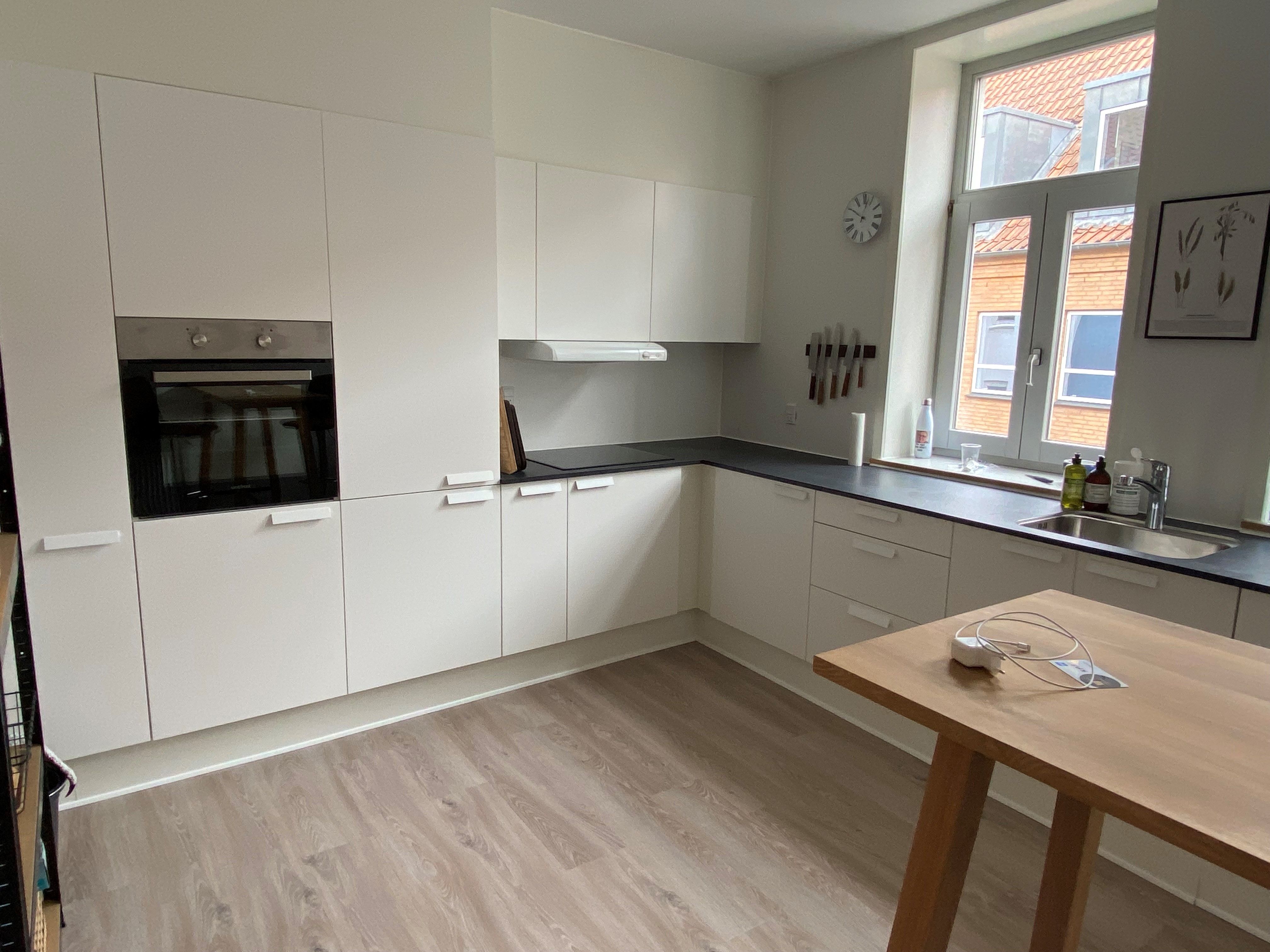 I hjertet af byen kan du leje denne indbydende og velbeliggende 2-værelses lejlighed på 74 m2. Orla Lehmannsgade er en hyggelig og rolig sidegade til gågaden. Der er kort afstand til byens restauranter, cafeer, teater samt andre seværdigheder og