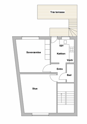 Boligen har med sin placering på 3. sal en skøn udsigt. Der er to altaner og en hyggelig atmosfære fra de skrå vægge.