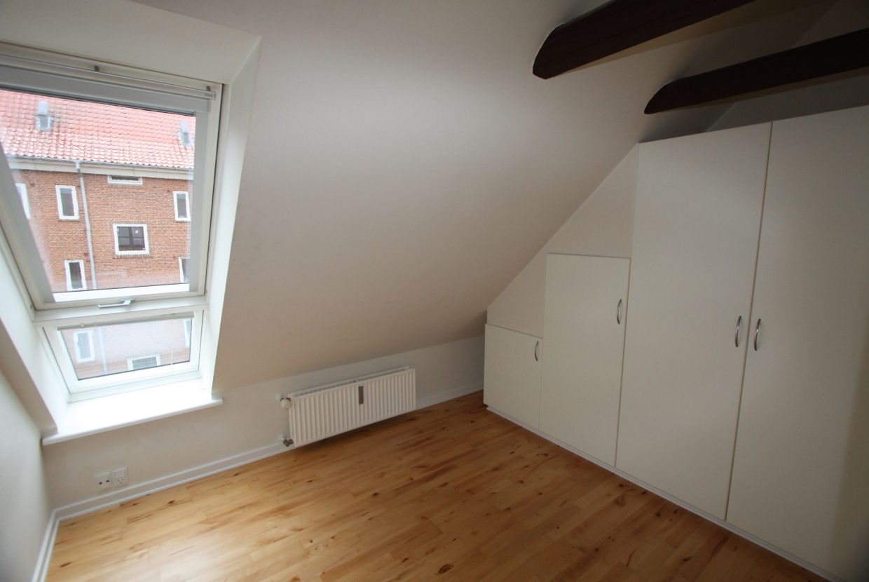 Desuden byder lejligheden på et rummeligt soveværelse med garderobeskab og to ekstra værelser, som giver frihed til at indrette efter behov; om det så er som børneværelser, kontor eller måske et hobbyrum. Det ene værelse er der et garderobeskab i.
