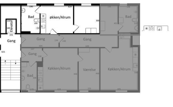 Lejligheden indeholder gang, badeværelse, køkken-alrum samt soveværelse med skabe.