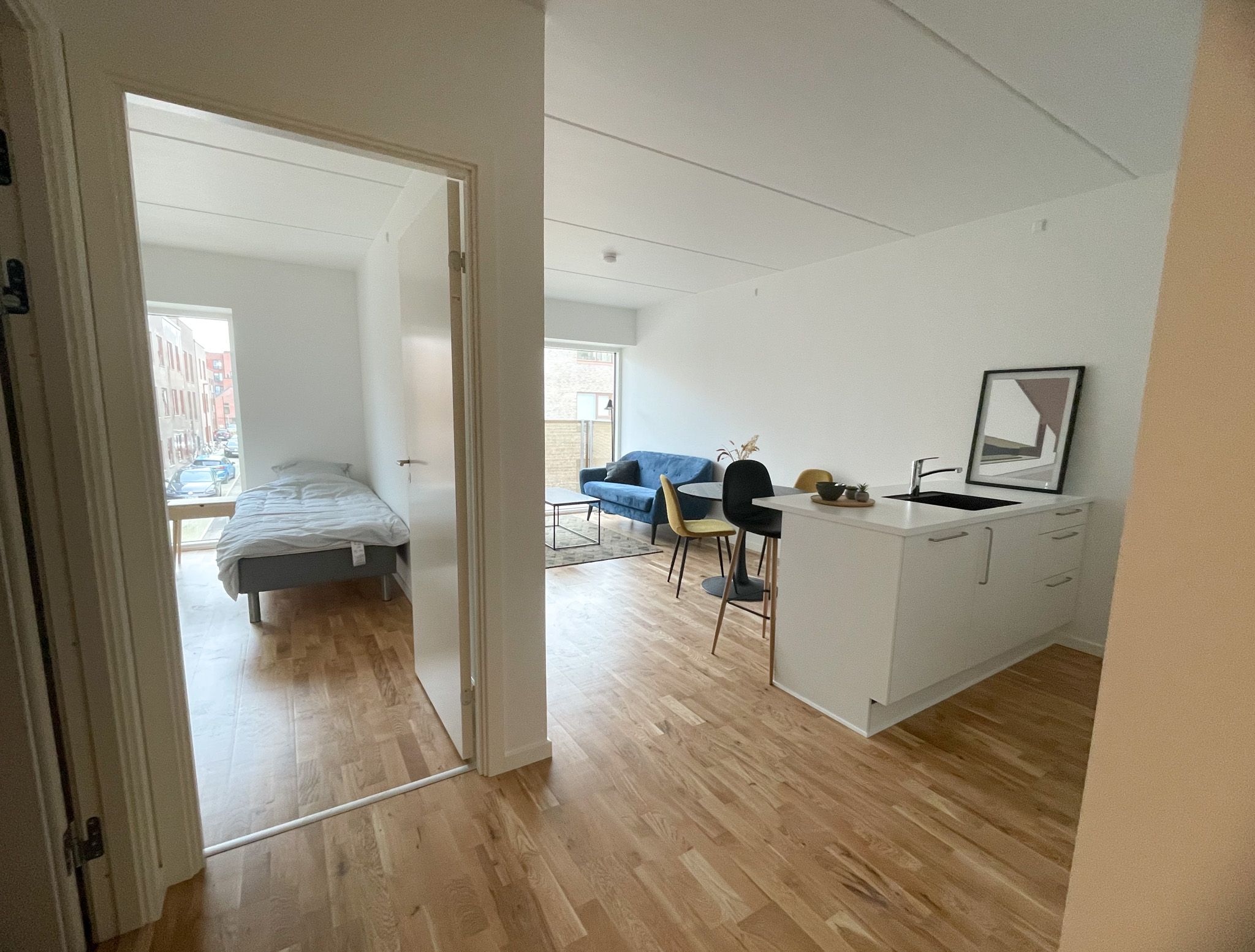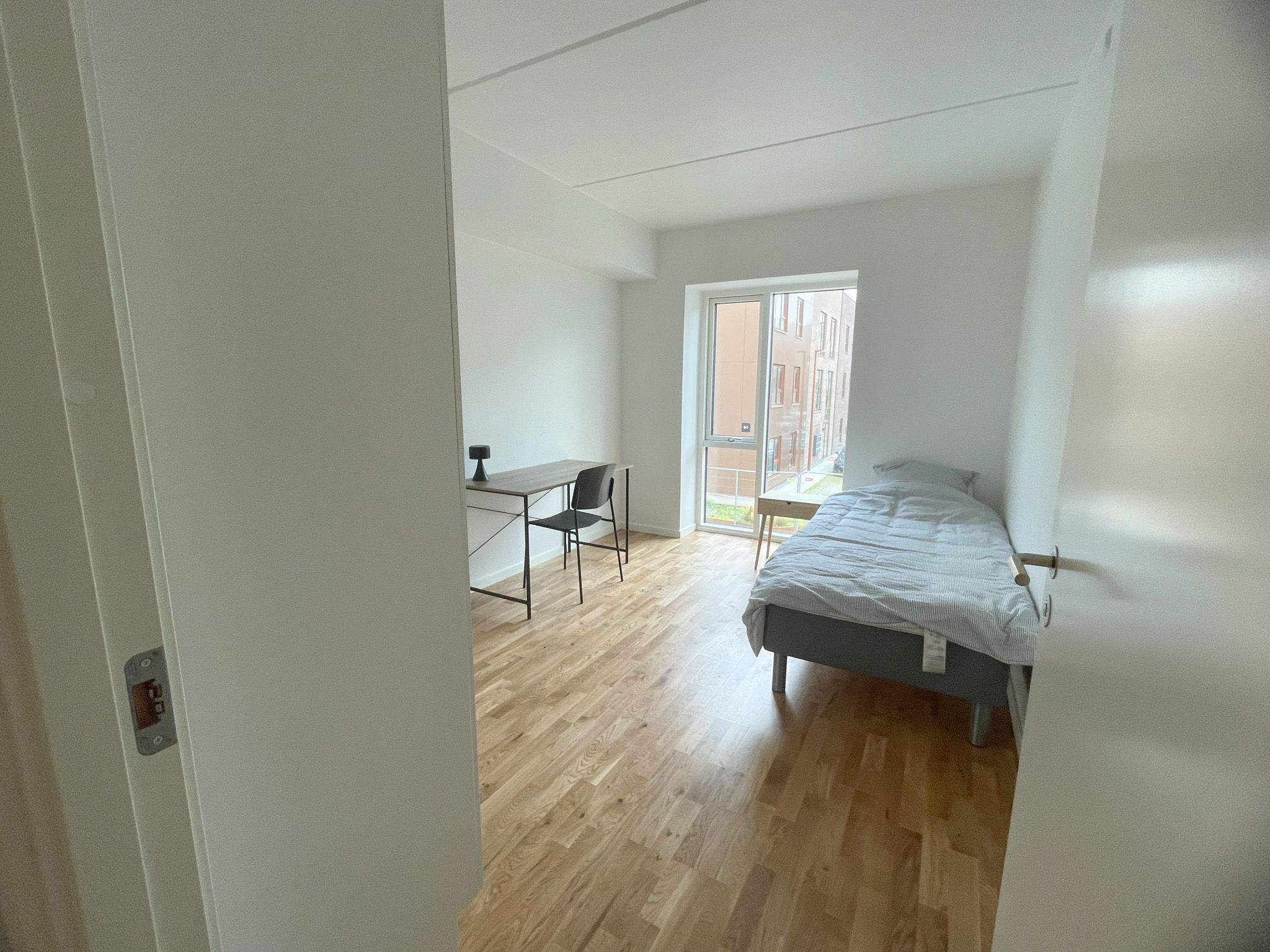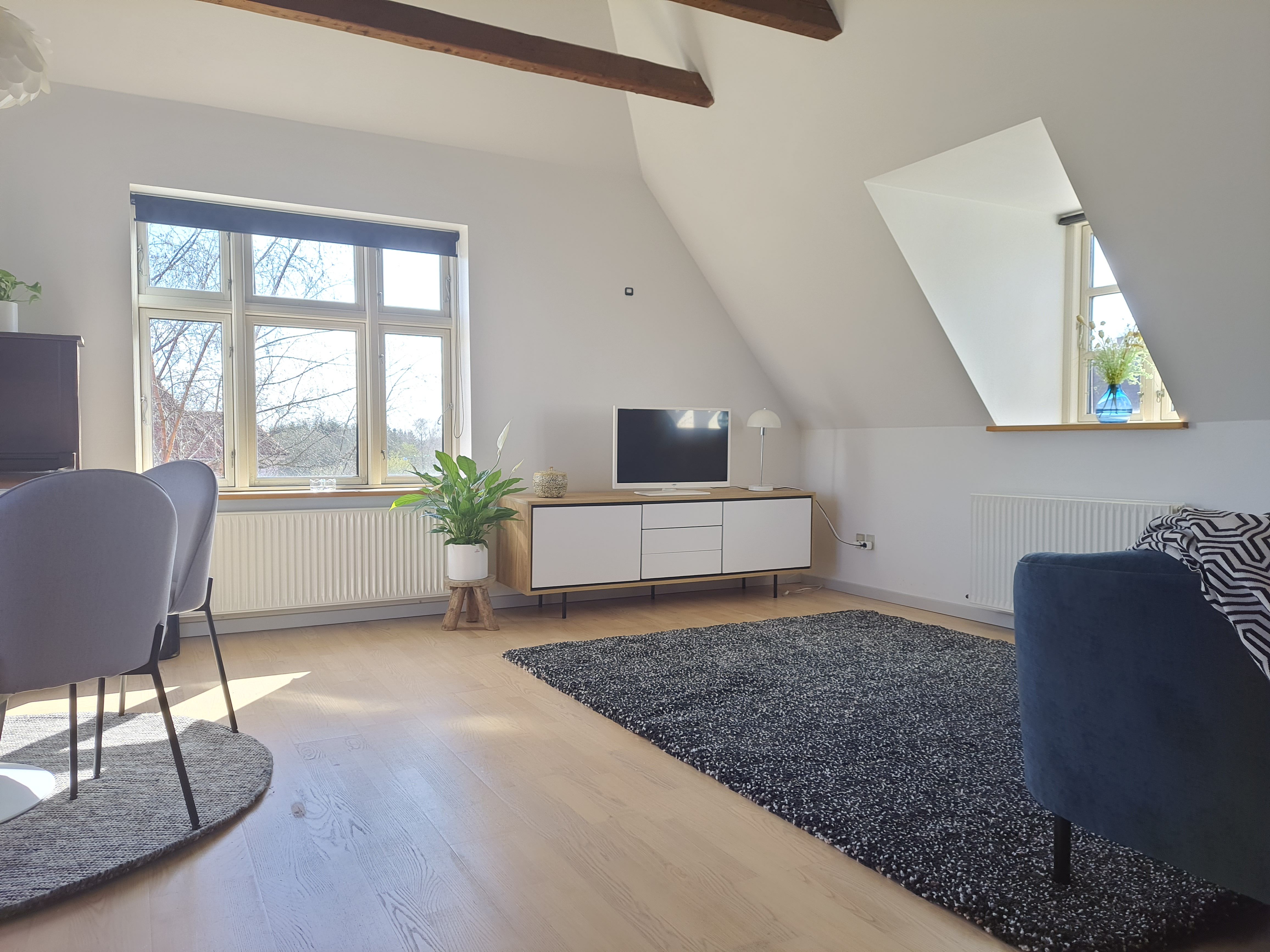 Overalt i lejligheden ligger parketgulv, mens badeværelset har klinker. Der er mulighed for at tilkøbe parkeringspladser til lejemålet.