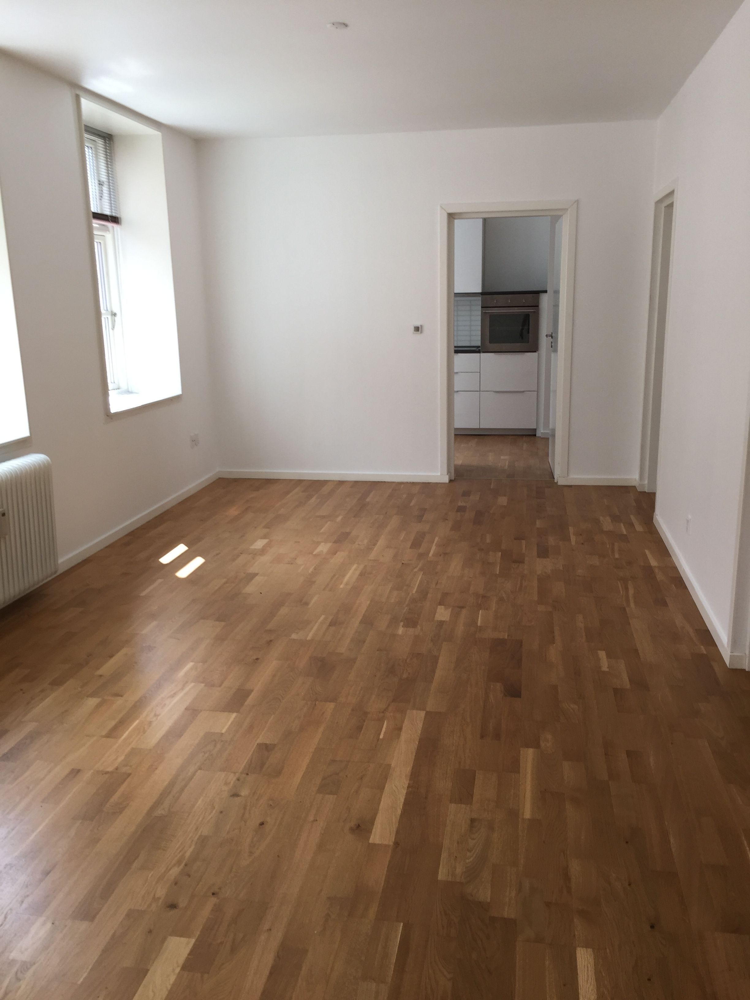 Lejligheden byder på en rummelig entré, to store sammenhængende stuer, et stort soveværelse med adgang til altan, og et moderne køkken med opvaskemaskine. Det stilfulde badeværelse er nyrenoveret med flotte fliser og en rummelig bruser.