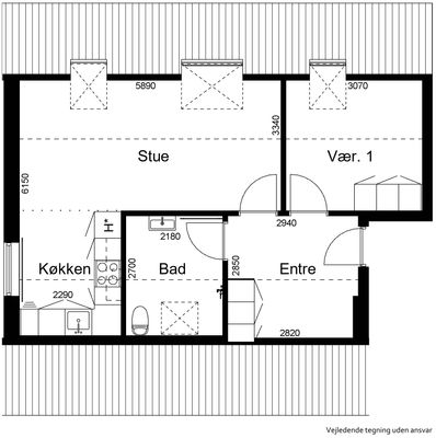 2 rm. apartment of 35 m²