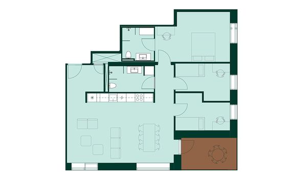 3 rm. apartment of 82 m²
