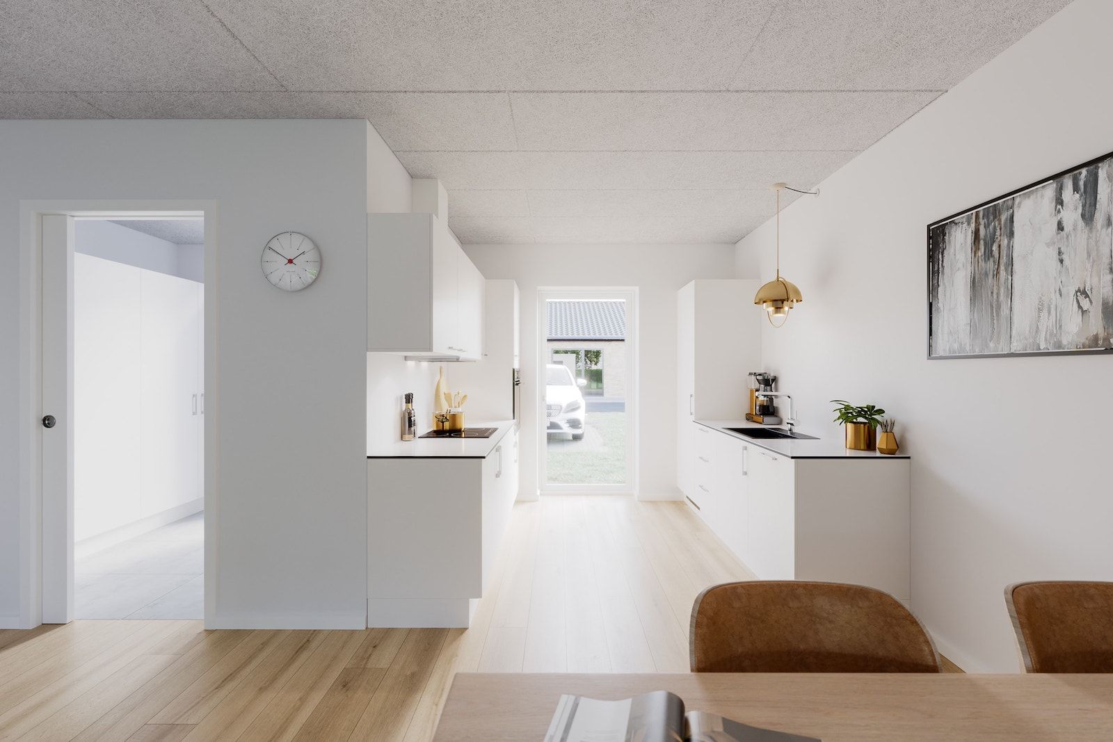 Lejlighedens indretning: Ved indgangen træder man ind i en entre, hvor der er installeret vaskemaskine og tørretumbler, hvilket giver ekstra bekvemmelighed i hverdagen. Fra entréen er der adgang til et moderne badeværelse samt et lyst køkkenalrum med stue. Køkkenalrummet er rummeligt og åbent, hvilket skaber en indbydende atmosfære og mulighed for at samles. Fra køkkenalrummet er der adgang til tre gode værelser, der kan anvendes som soveværelser, kontor eller gæsteværelser, alt efter behov. Udenomsarealer: Lejligheden har egen carport, hvilket giver beskyttelse mod vejret og nem adgang til bilen. Derudover er der et skur til opbevaring samt en hyggelig have, perfekt til udendørs aktiviteter og afslapning. Beliggenhed: Lejligheden ligger i et stille og børnevenligt kvarter i Billund, tæt på lokale faciliteter, skoler og grønne områder. Nyd godt af nærheden til byens attraktioner, herunder Legoland og Billund Lufthavn.