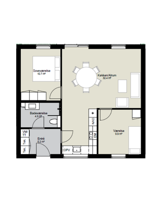 2 rm. apartment of 84 m²
