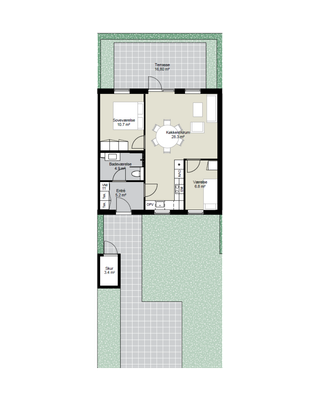 2 rm. townhouse of 67 m²