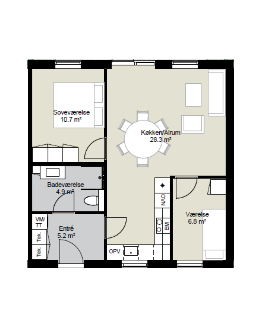 2 rm. apartment of 71 m²