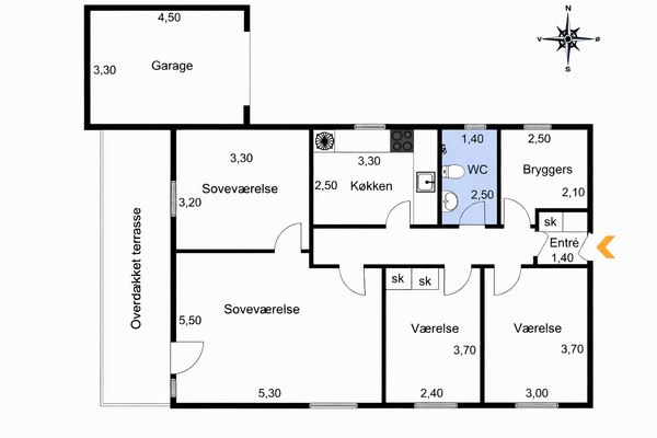 Dejligt 1 plans hus med helt nyt badeværelse!