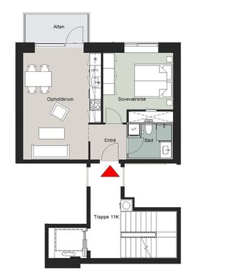 1 rm. apartment of 26 m²