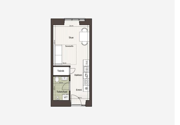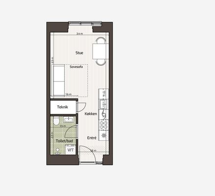 1 rm. apartment of 36 m²