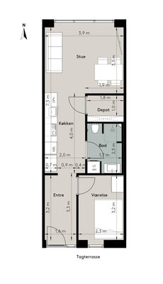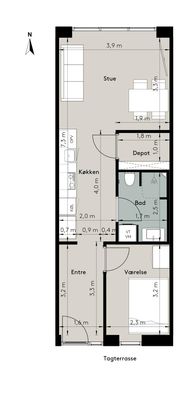 2 rm. apartment of 38 m²