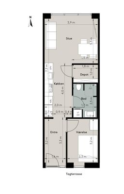 2 rm. apartment of 38 m²