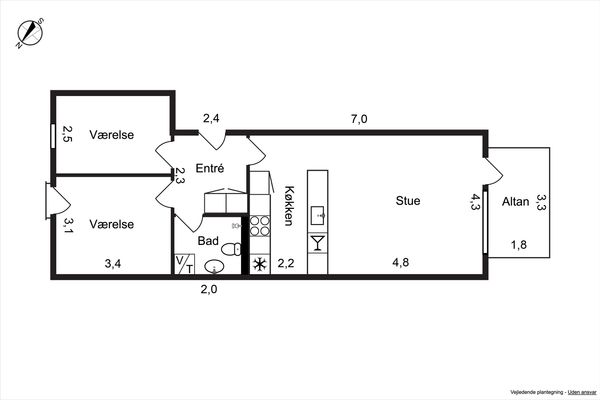 3 rm. apartment of 80 m²