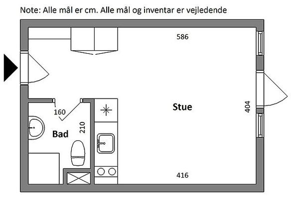 1 rm. apartment of 34 m²