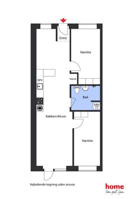 2 rm. apartment of 53 m²