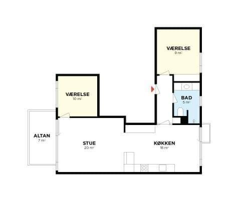 2 rm. apartment of 58 m²