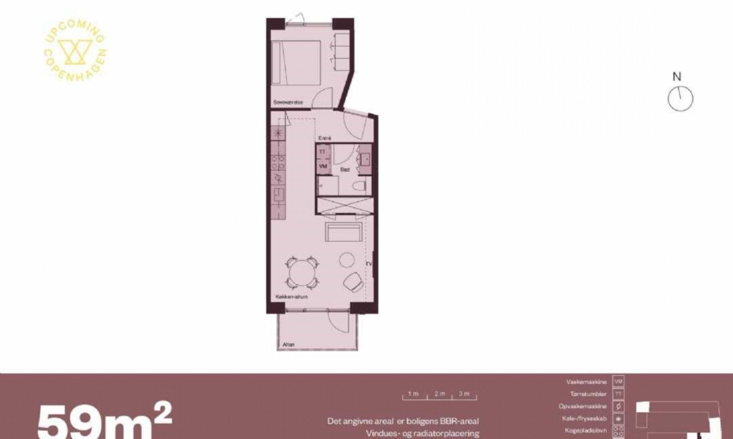 2 rm. apartment of 59 m²