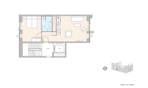 1 rm. apartment of 44 m²