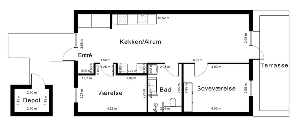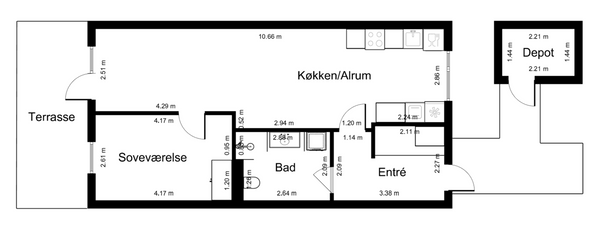 2 rm. apartment of 67 m²