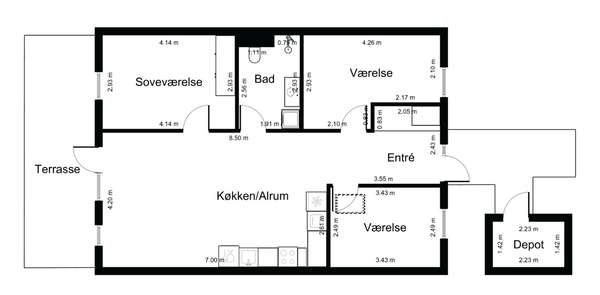 3,5 rm. apartment of 104 m²
