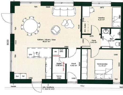 2 rm. apartment of 67 m²