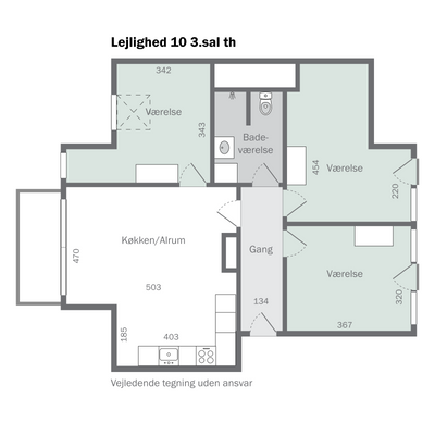 2 rm. apartment of 54 m²